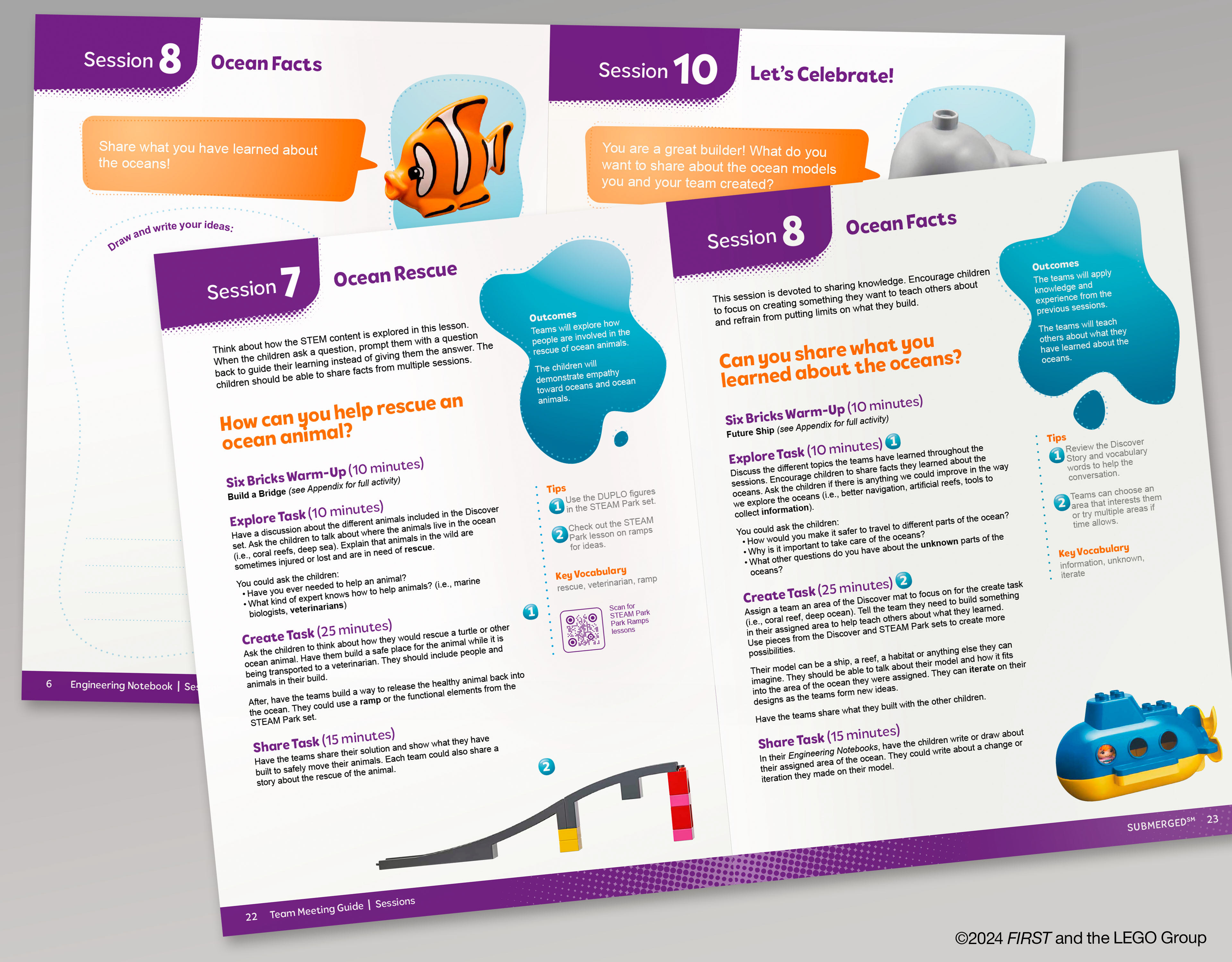 FIRST® LEGO® League Discover: Age 4-6. Team Meeting Guide for teachers, Engineering Notebook for students.