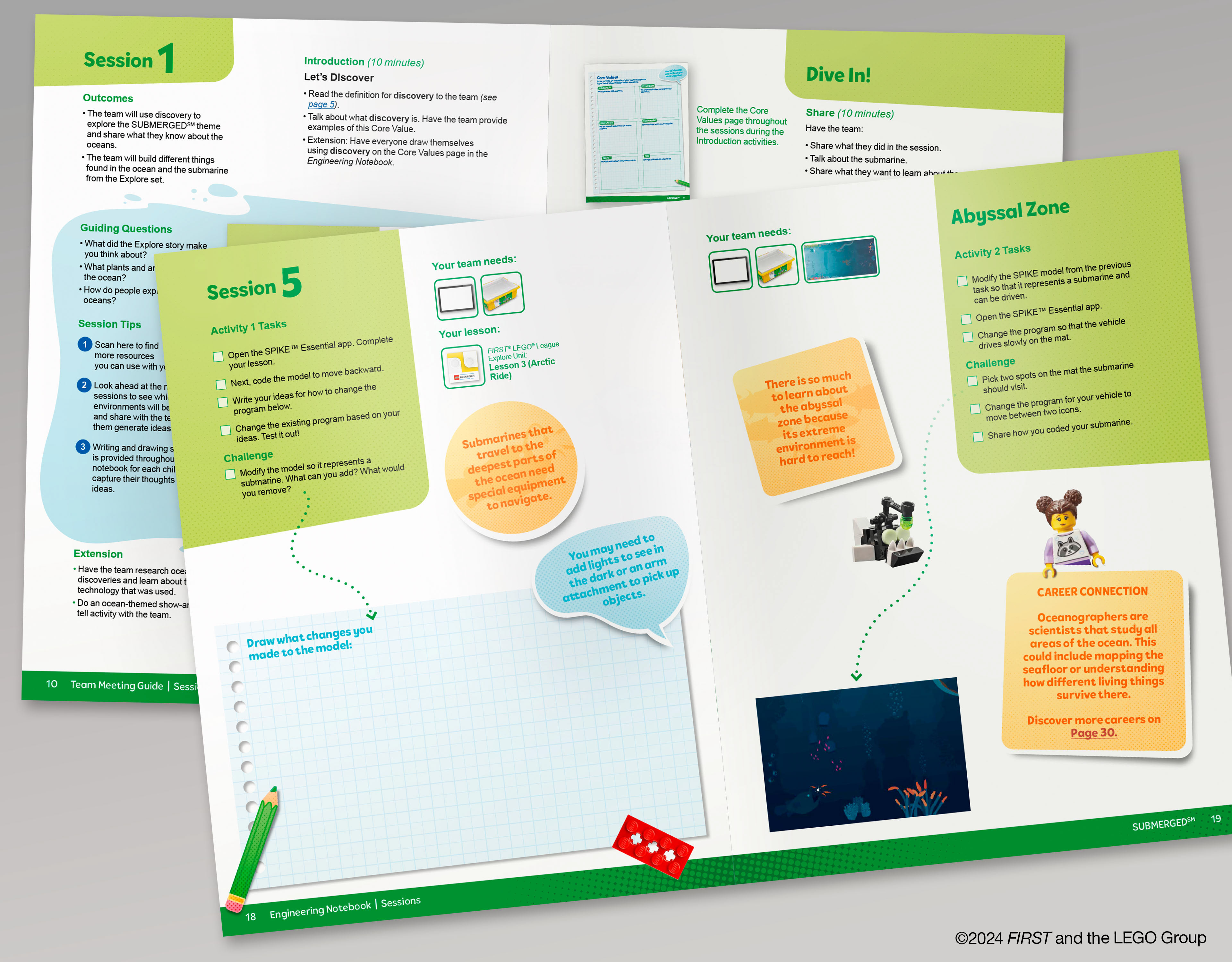 FIRST® LEGO® League Explore: Age 7-11. Team Meeting Guide for teachers, Engineering Notebook for students.