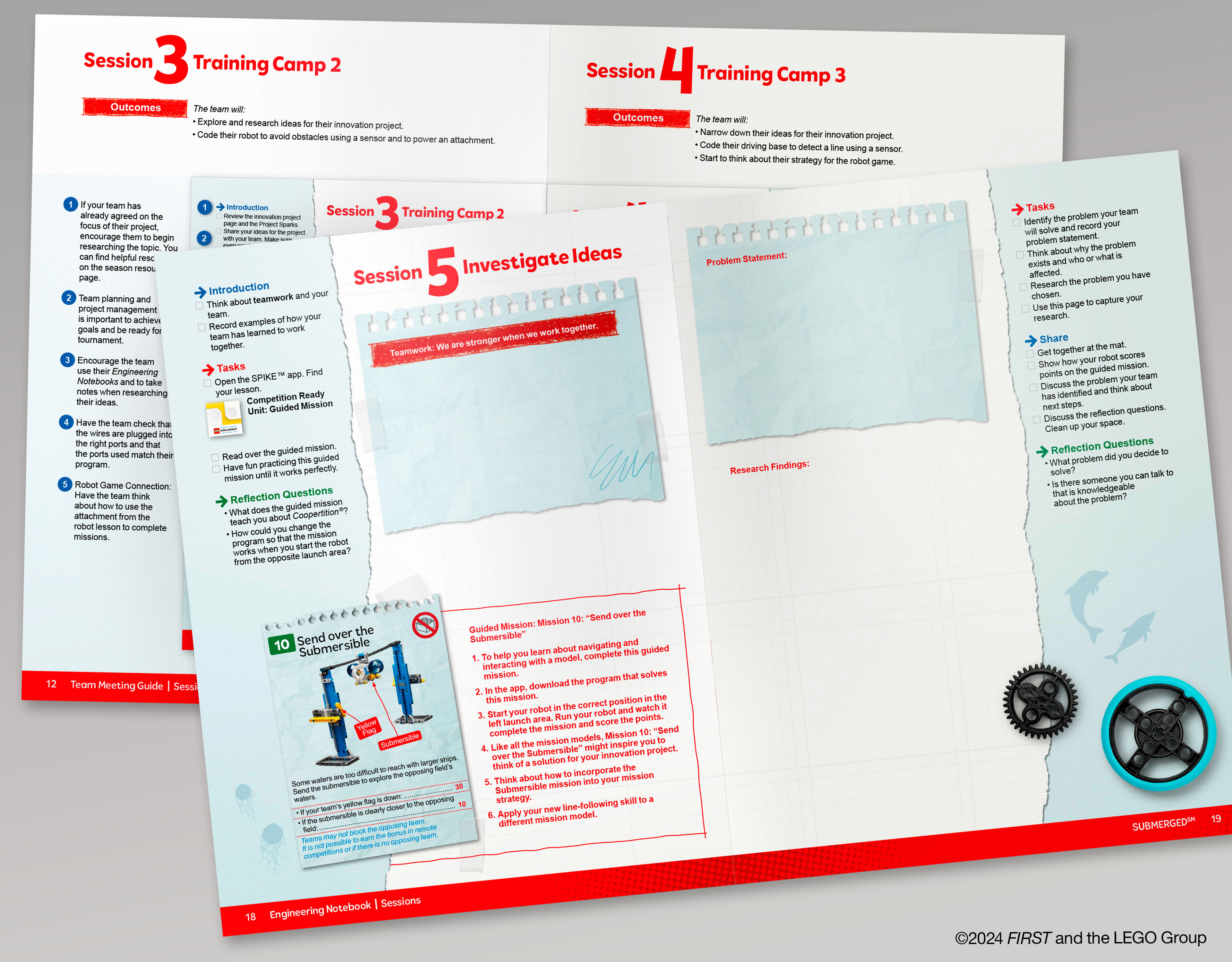 FIRST® LEGO® League Challenge: Age 12-16. Team Meeting Guide for teachers, Engineering Notebook for students.